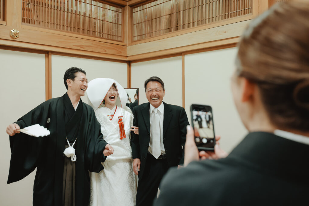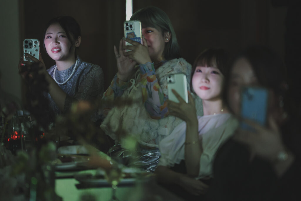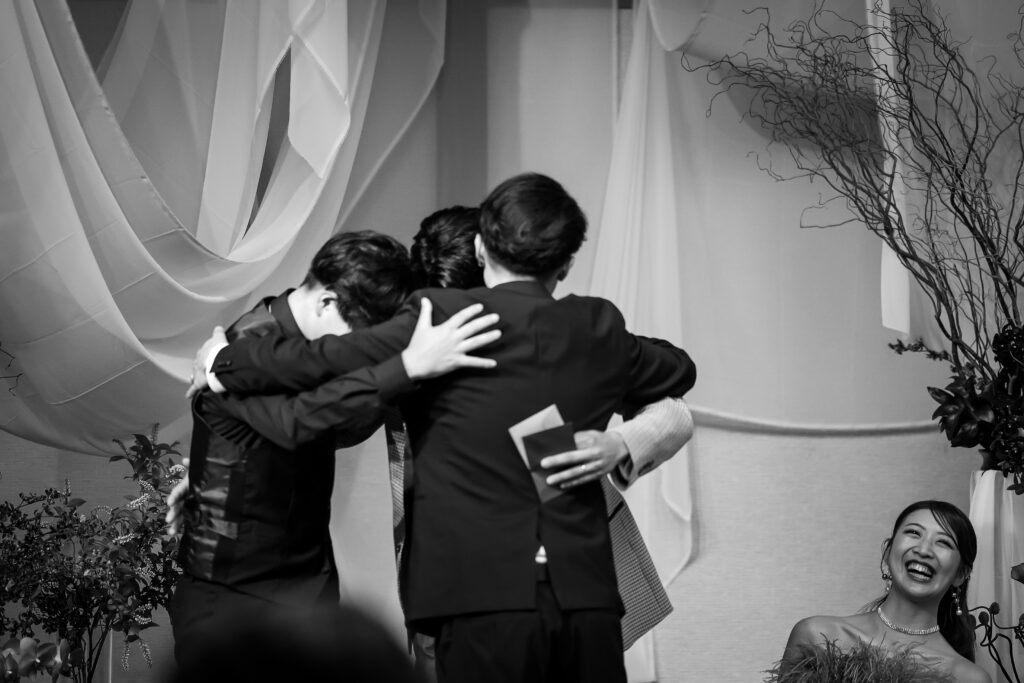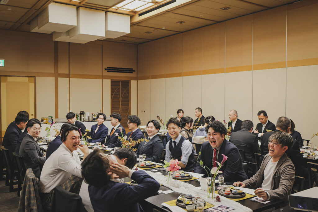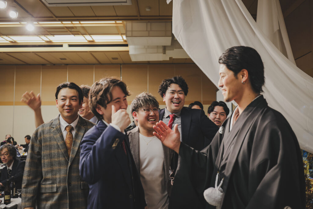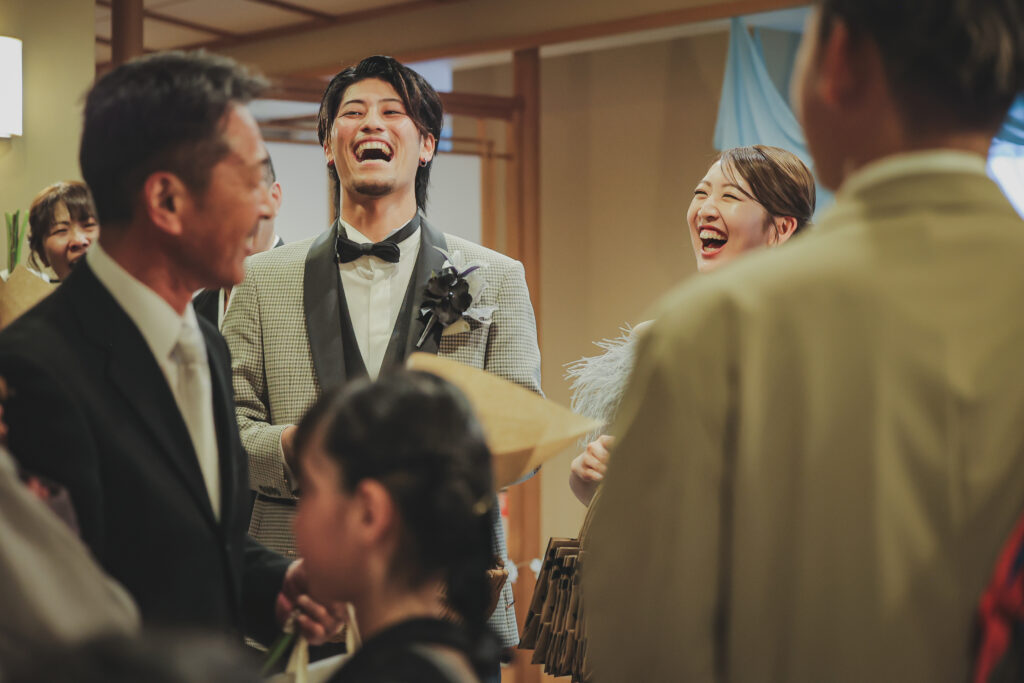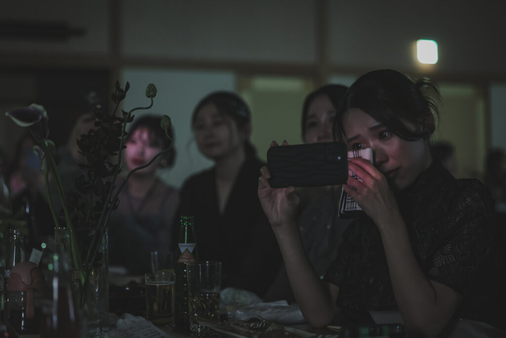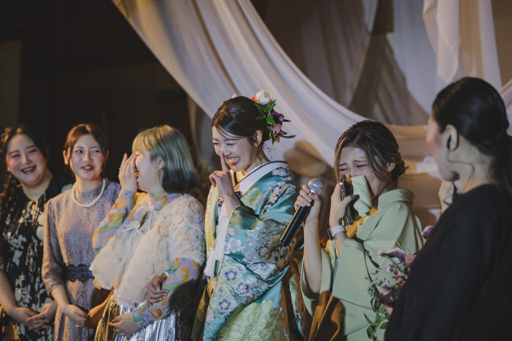笑顔と涙ぐんでいる姿、私たちの緊張をほぐすためか変顔をして笑わせてくれた友人もいました。