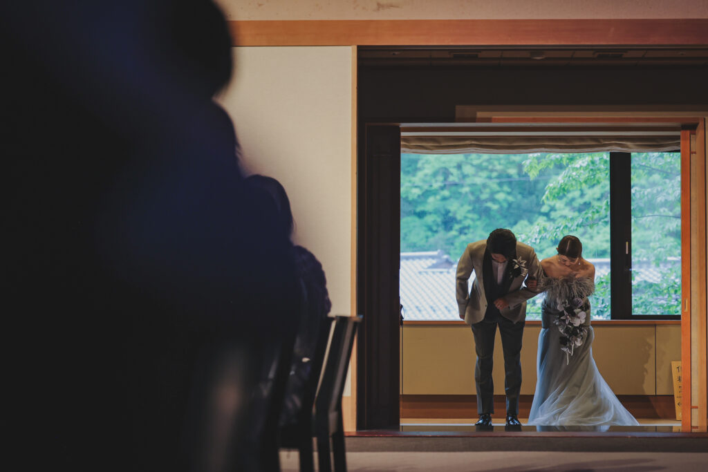 | Season: 初夏 / 5月 | Style: 神前式 | Venue: 山形県出羽三山神社 山形県あつみ温泉たちばなや |